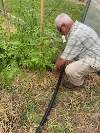 A New year means more crops in the high tunnel. Unlike last year, this year we did not plant any herbs. We focused on planting peppers and tomatoes. We have 5 rows of plants total with Cherry tomatoes in each corner of the high tunnel and 3 rows of jalapenos in the middle. We also have Poblano, Banana, and Lunch Box Mix peppers in pockets throughout the rows. Dave and Brian tilled the high tunnel in early April and about a month later in May, we got our plants. We decided to go with transplants since they have the highest chance of succes. We have had to put out serveral hay bales and have needed to weed several times but over the course of these several weeks the high tunnel has been slowly growing with our first harvest of peppers on July 7th. All of the peppers are at hip height and producing vegetables quite nicely. We should be getting even more produce soon. Here is a collection of photos to show off our progress.